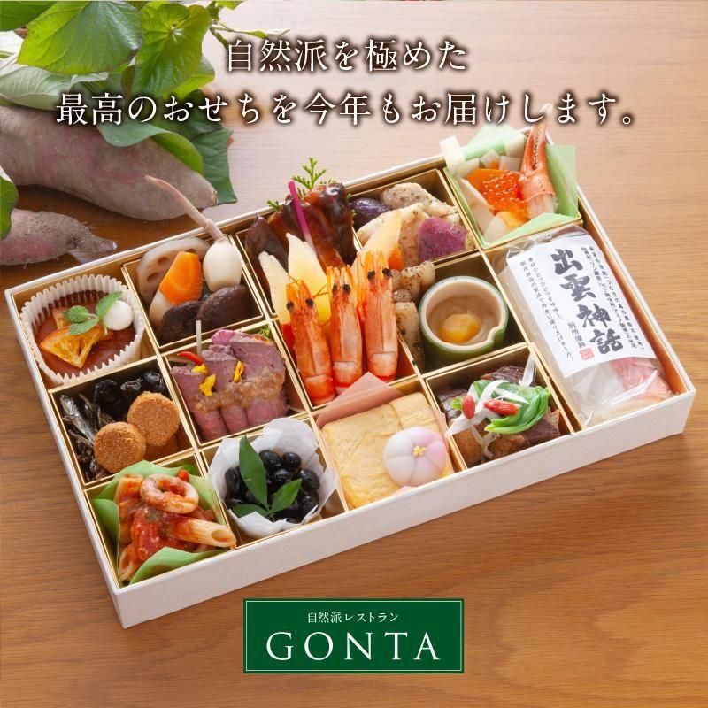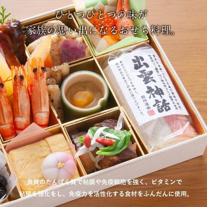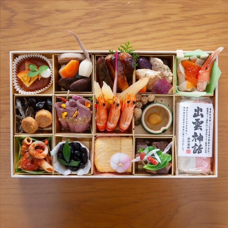 ●バジルチキン&オーガニック野菜グリル添え ●紅白蒲鉾「出雲神話」 ●栗きんとん ●たたき牛蒡furu・furuまぶし ●焼海老 ●数の子